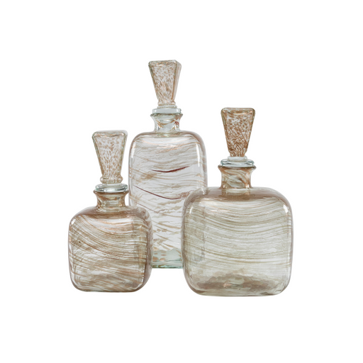 Give a touch of luxury to a home decor collection with this set of Adeline Bottles. These beige, glass bottles featuring stylish brush patterns and...