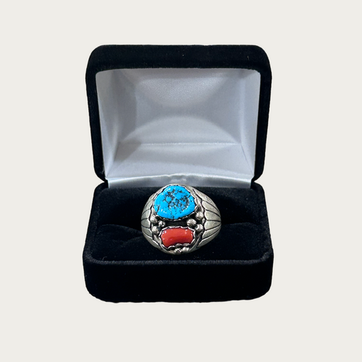 View full detailsS/S Alvery Smith Kingman Turquoise & Coral Ring Sz 12 No. N19